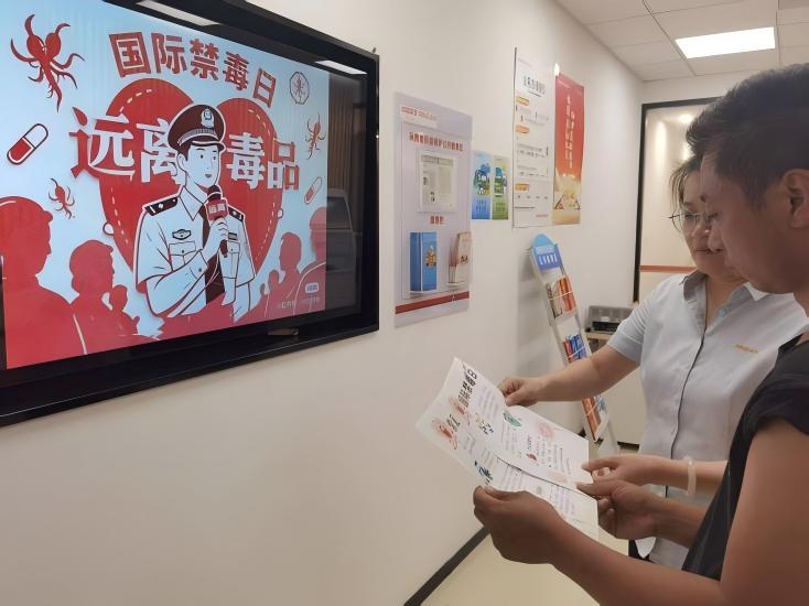 在江阴,平安产险志愿者走进江阴管委会写字楼,面向白领群体开展禁毒知识宣传,在人流密集的大堂、电梯口等地,利用午休时间开展“禁毒微课堂”。宣传人员向企业员工和上班族重点普及了如何识别工作场所潜在的涉毒风险、抵制不良诱惑,强调了健康生活方式和合法娱乐的重要性,引导职场人群树立积极向上的价值观,筑牢工作场所的禁毒防线。
