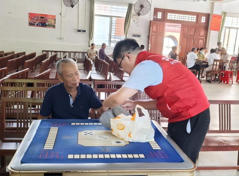 平安产险福清中心支公司的爱心志愿者策划起一场“移动测量站”进村的活动-----既然老人不爱跑远路,那就让“血压测量站”直接开进他们最熟悉的根据地:老人活动中心!于是,8月20日,一支带着血压测量计和反诈小剧本的队伍,悄然开进福清市高山镇上街老人活动中心。