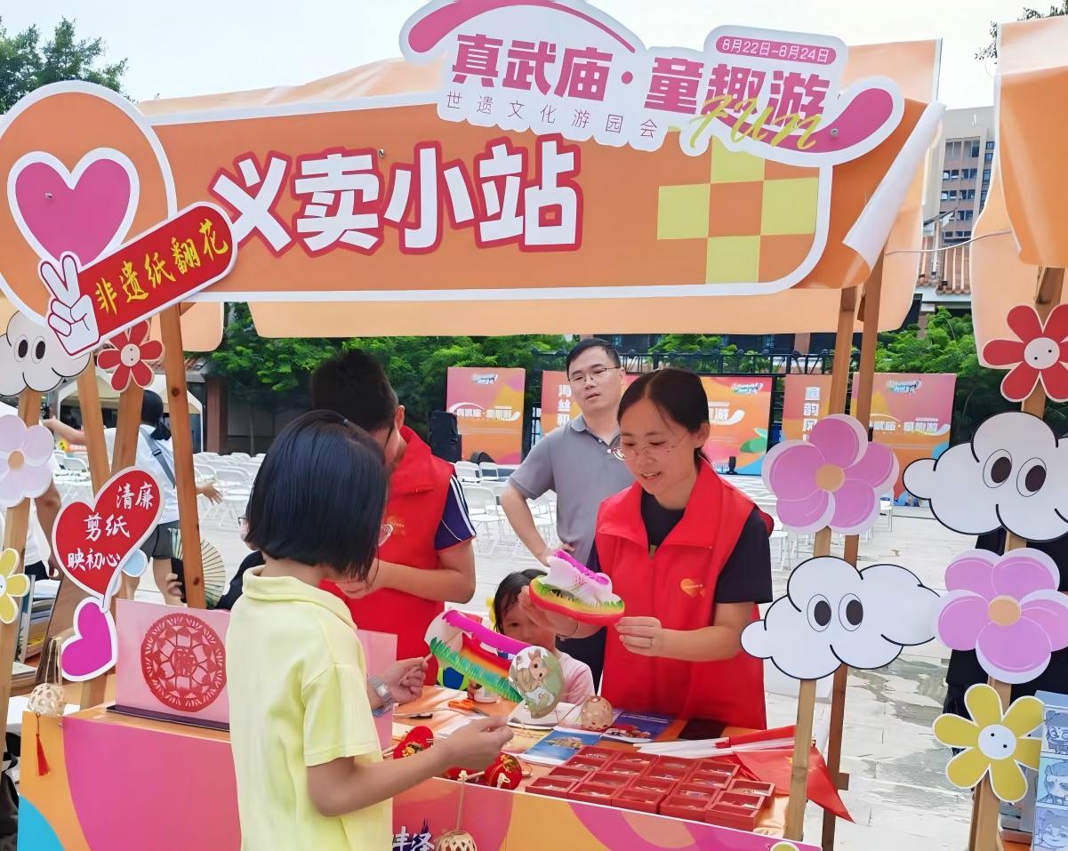 “纸花轻轻转,童心微微亮,非遗传承暖,助学在路上……”8月24日,初秋的泉州,夕阳为真武庙前广场披上一层金晖。由政协泉州市丰泽区委会主办的“真武庙·童趣游”世遗文化游园会正在这里热闹举行。当天,平安产险泉州中心支公司与其他8家爱心单位一起,以非遗为媒、公益为桥,开启了一场温暖的开学季义卖助学行动,让传统技艺成为照亮困境学子求学路的一盏灯。