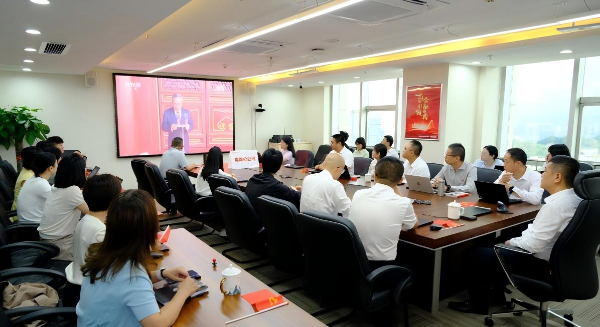 9月3日上午,平安产险福建分公司组织全体党员干部及员工集中观看纪念中国人民抗日战争暨世界反法西斯战争胜利80周年阅兵活动直播。当空中护旗梯队呼啸而过,当钢铁洪流铿锵前行,会议室里多次自发响起由衷的掌声。