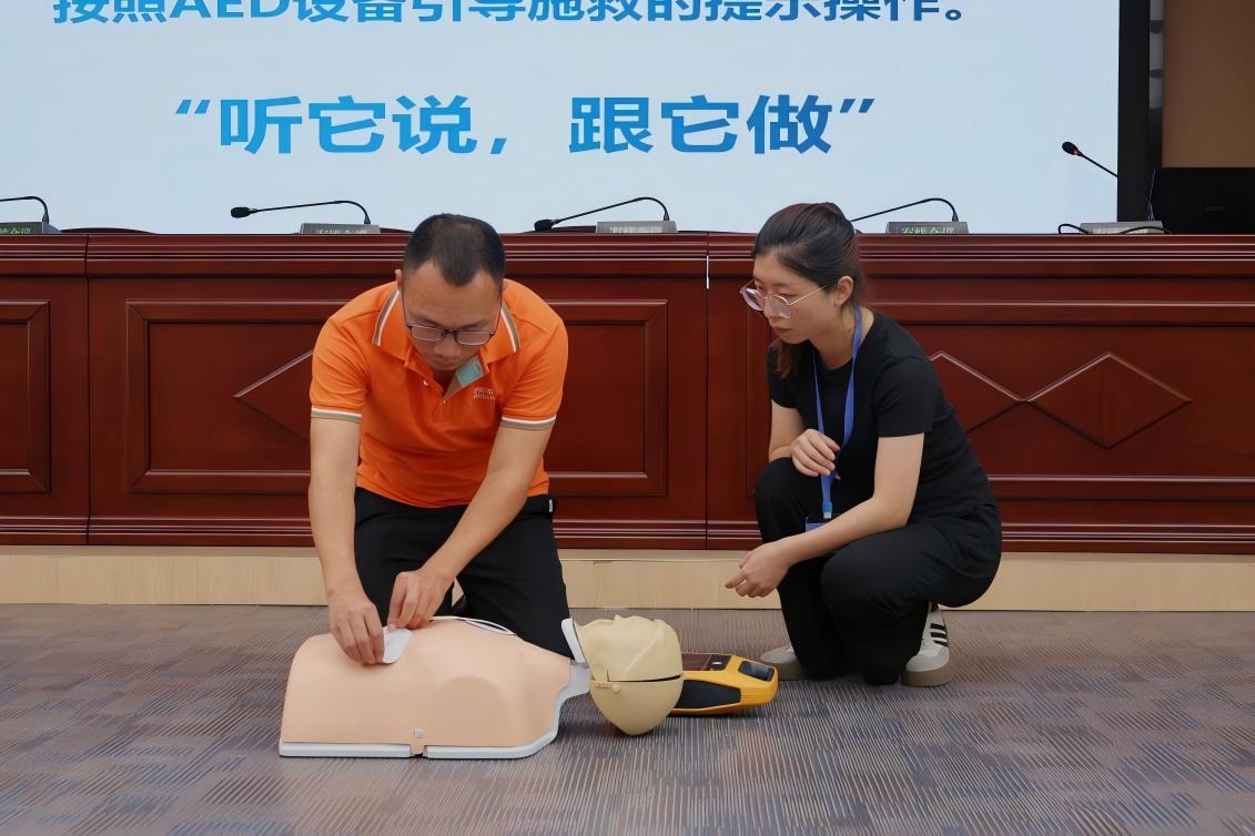 送硬件设备,更送实用技能。当天,平安产险龙岩中心支公司还特邀医疗专家为村民和镇卫生院医护人员开展应急救护培训,详细讲解AED 使用方法、心肺复苏操作步骤等实用技能,并通过现场演示,让大家在互动中掌握要领。这不仅提升了基层应急救护能力,也为守护群众生命安全增添了“护身符”。