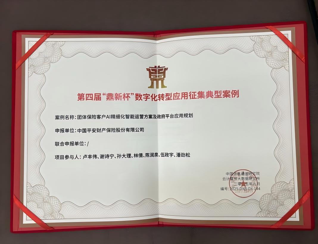 当科技金融遇上保险服务,会碰撞出怎样的创新火花?9月16日,由中国通信标准化协会主办、中国信息通信研究院承办的“2025(第五届)数字化转型发展大会”在京举办,正式揭晓第四届“鼎新杯”数字化转型应用征集活动评选结果。平安产险福建分公司联合平安总部技术团队打造的《团体保险客户AI精细化智能运营方案及政府平台应用规划》成功上榜典型案例名单。该项目通过构建“智能分群-策略生成-自动执行-动态优化”的闭环体系,让保险服务从“千人一面”走向“千企千策”,为保险业数字化转型写下生动注脚。