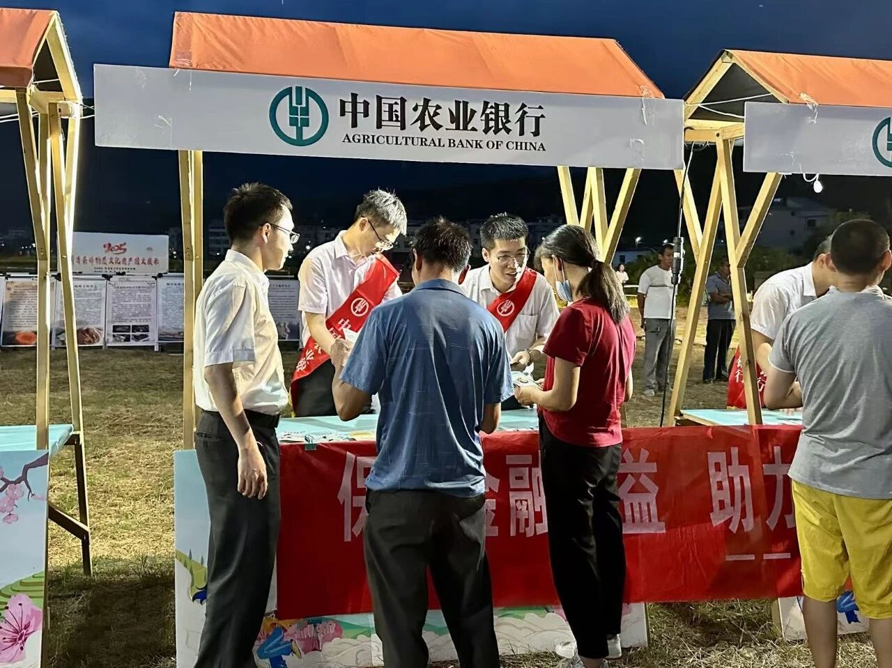 舞台旁,农行闽清支行设置的金融消保展位同样围满了村民。农行工作人员利用这个难得的机会,向村民宣传普及金融防诈骗和金融消保知识。
