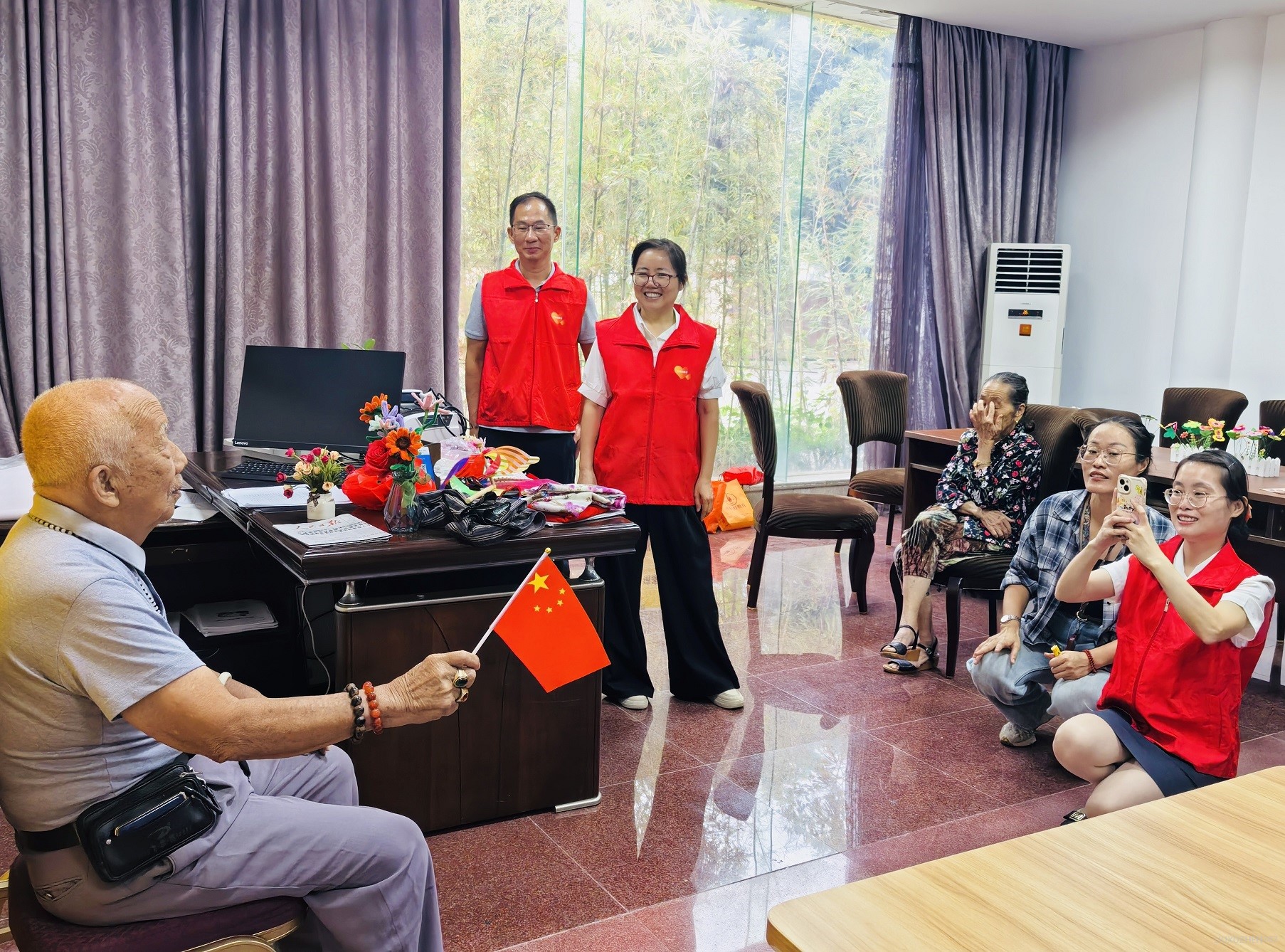 活动现场,志愿者们耐心十足,有的帮老人整理衣角、梳理头发,有的用亲切话语引导老人放松微笑,原本有些拘谨的老人们很快被热闹氛围感染。当过兵的李爷爷挺直腰板,不自觉摆出标准坐姿,眼神里依旧透着军人的坚毅;患有小脑萎缩的曾奶奶在志愿者的耐心引导和趣味道具互动下,脸上绽放出孩童般纯真的笑容;而持有“光荣在党50年”纪念章的王爷爷,因未携带勋章拍照而面露遗憾,志愿者当即暖心承诺:“爷爷您别遗憾,我们下次可以专门为您拍一组‘勋章纪念照’,把这份荣誉好好定格下来。”志愿者的承诺让王爷爷瞬间舒展了眉头。