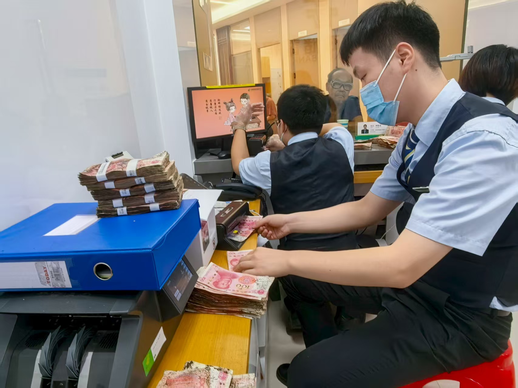 “不能放弃任何一张”,柜面深知这是一场对耐心与专业的考验。面对这项远超常规业务难度与时间的任务,柜员给出的回应简洁而坚定:“钱交给我们,请放心。” 柜台内,一场无声的“精密手术”随即展开。点钞机在此刻失灵,取而代之的是员工们指尖的细腻操作。他们借助镊子、胶带等工具,如同“文物修复师”一般,对每一张纸币进行剥离、摊平、比对、甄别。