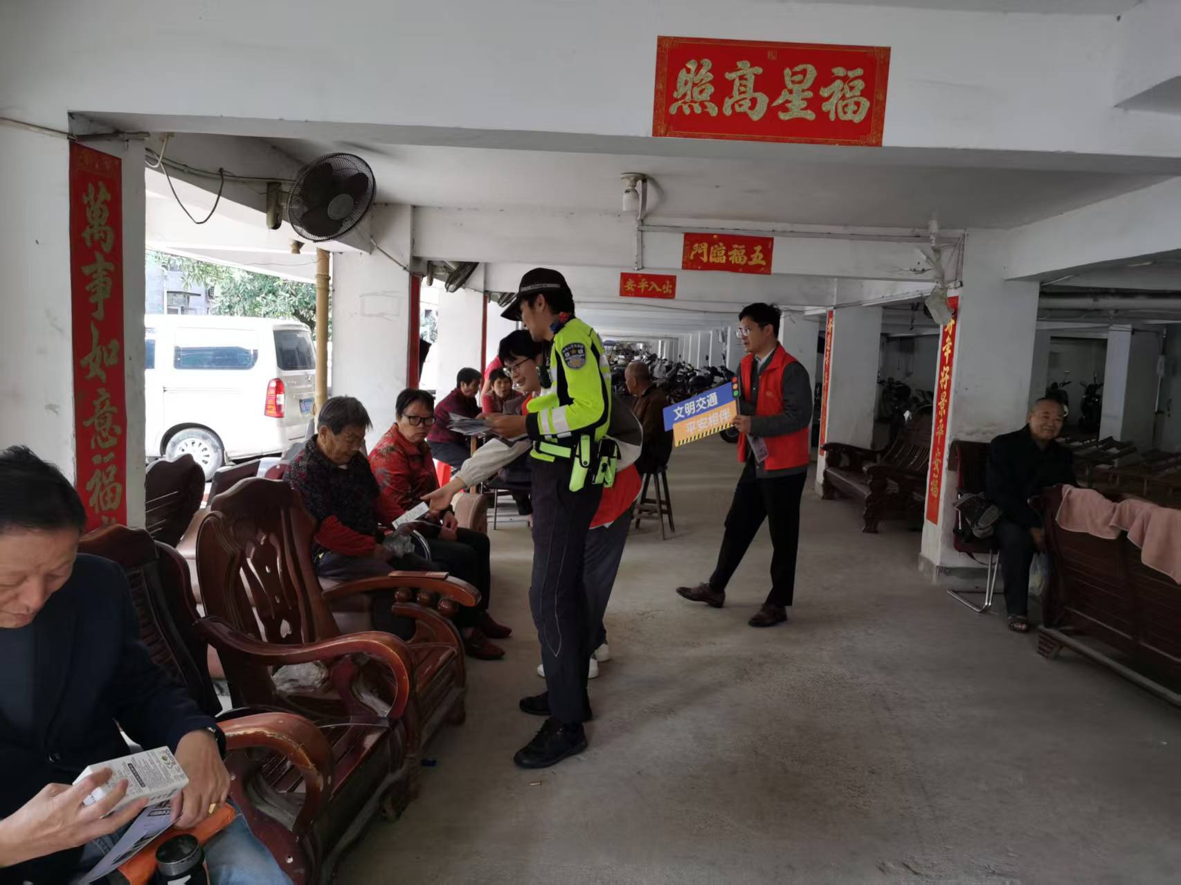 为提升农村地区居民的道路交通安全意识,营造安全、文明、和谐的交通环境,10月24日,平安产险福州中心支公司志愿者联合闽侯县交警大队,走进闽侯蔗州村,开展了一场别开生面的道路安全风险减量宣传活动,旨在向村民普及道路交通安全知识,倡导文明出行理念。