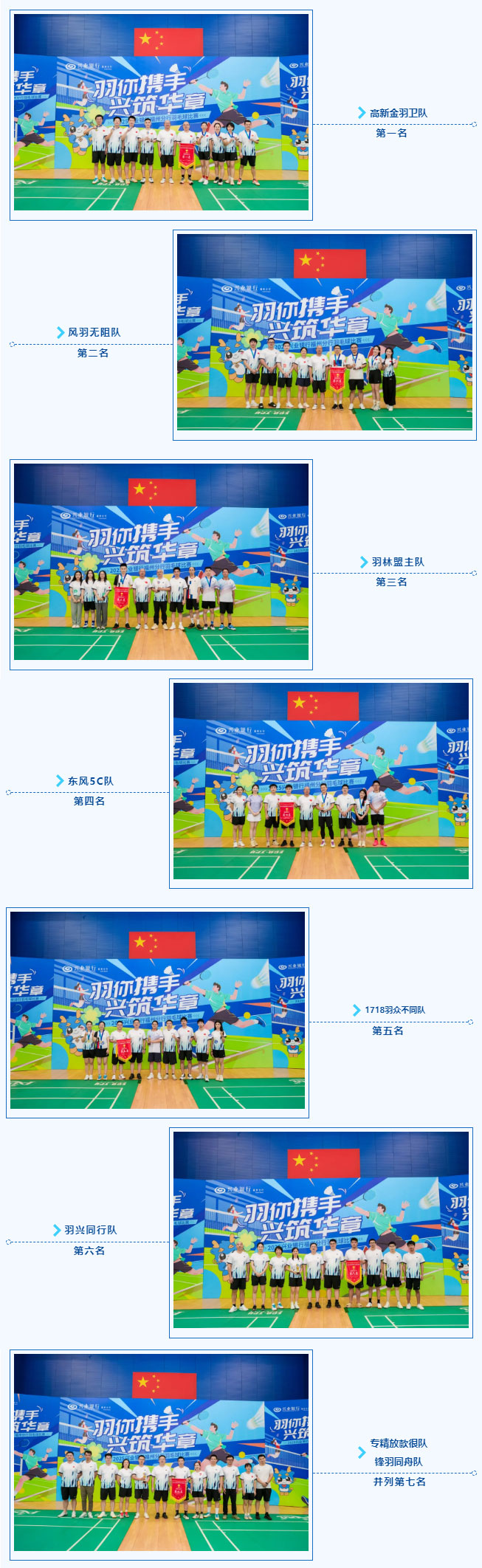 经过多轮紧张激烈的比拼,高新金羽卫队——陈景纳凭借强大的实力和稳定的发挥,勇夺男单冠军;而在备受瞩目的双打项目中,羽林盟主队——方彬、陈传东及1718羽众不同队——蔡娟、黄悦颖,分别凭借无间的配合夺得男双和女双第一名,东风5C队——鲁宁、施乐儿夺得混合双打第一名。分行领导为单项赛前三名选手颁发了奖牌与荣誉证书。