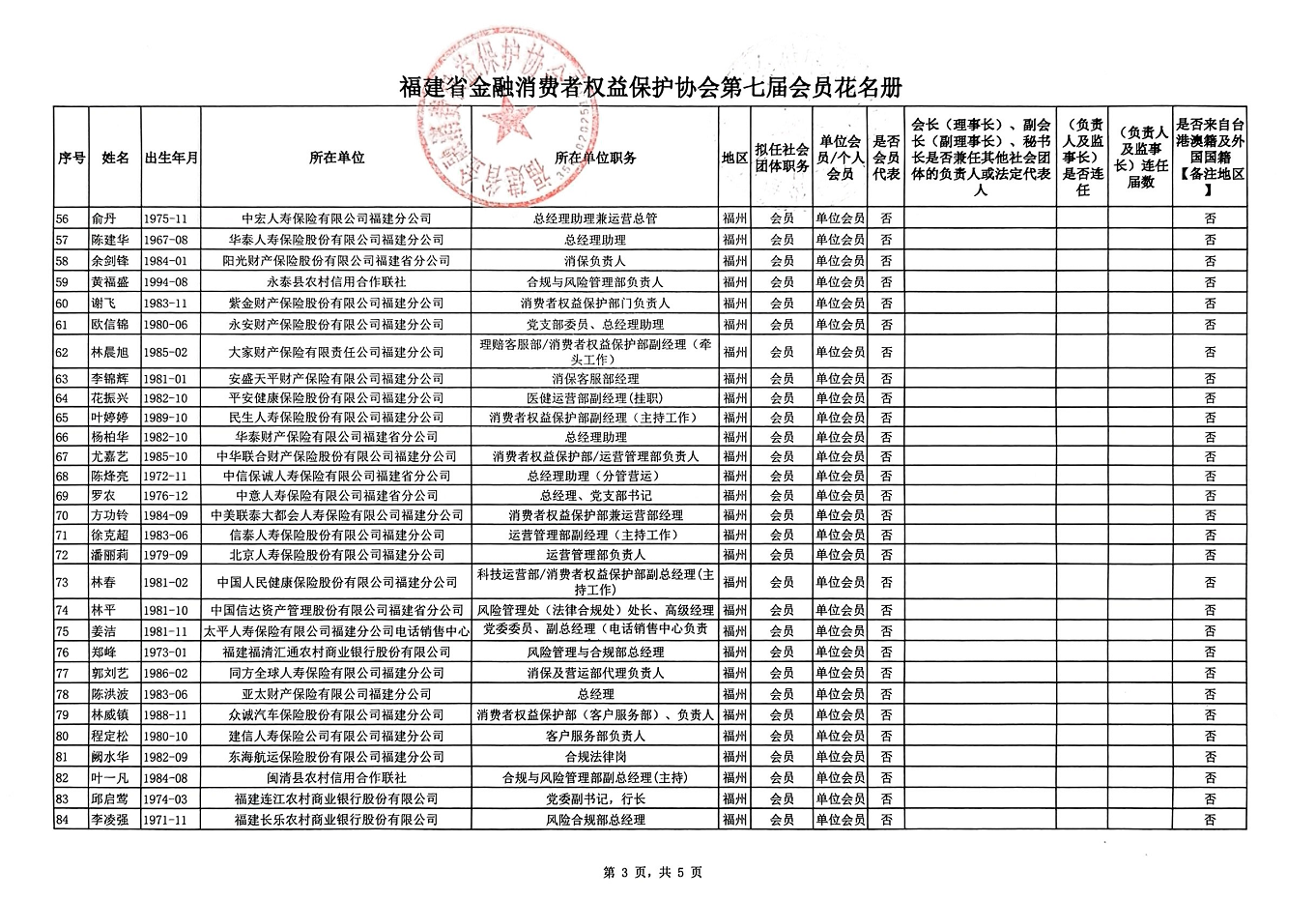 根据《福建省社会团体换届选举办法》有关规定,经福建省金融消费权益保护协会换届选举委员会审核,现将拟确定的第七届候选人名单和会员名单予以公示。公示期为2025年11月14日至2025年11月20日,共7天。