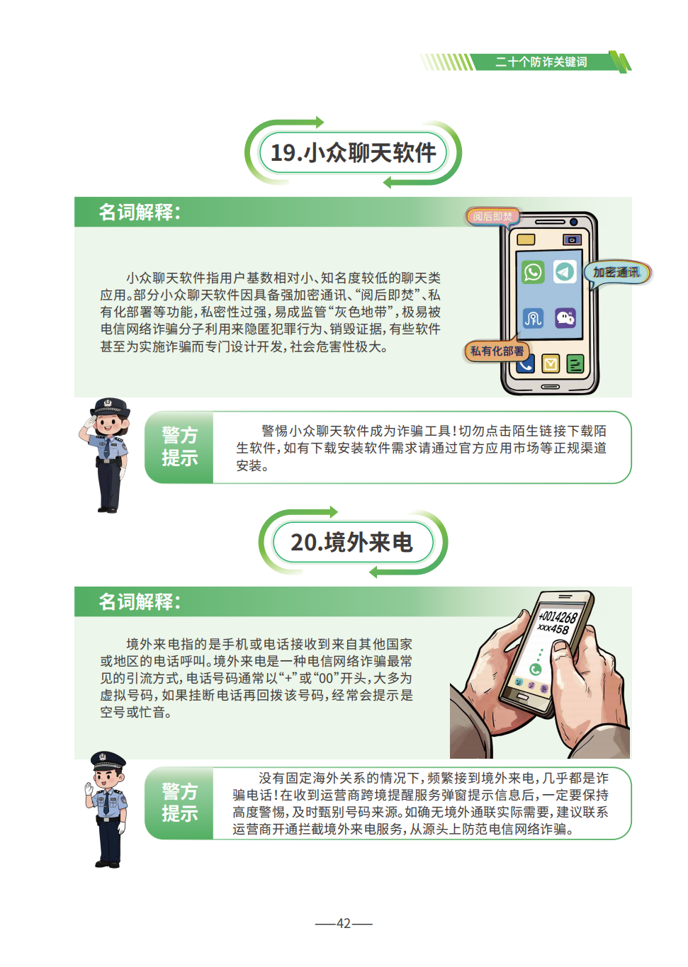 近日,公安部发布《2025版防范电信网络诈骗宣传手册》。针对近年来层出不穷的电信网络诈骗新手法、新套路,为了帮助广大群众提升识骗防骗能力,公安部刑侦局通过对近期侦破的电诈案件进行分析研判,并综合各地预警劝阻经验做法,系统总结提炼了20个防诈关键词,为广大群众提供了破译电诈骗局的“密码”。