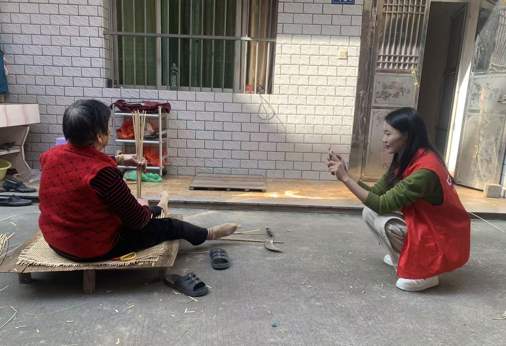 12月23日,平安产险漳州中心支公司志愿者们走进南靖县元湖村巷弄,与当地竹篾编织非遗艺人围坐一处,跟着老手艺人学起了竹篓编织——指尖翻飞间,传统技艺与金融公益的温度在此交融。