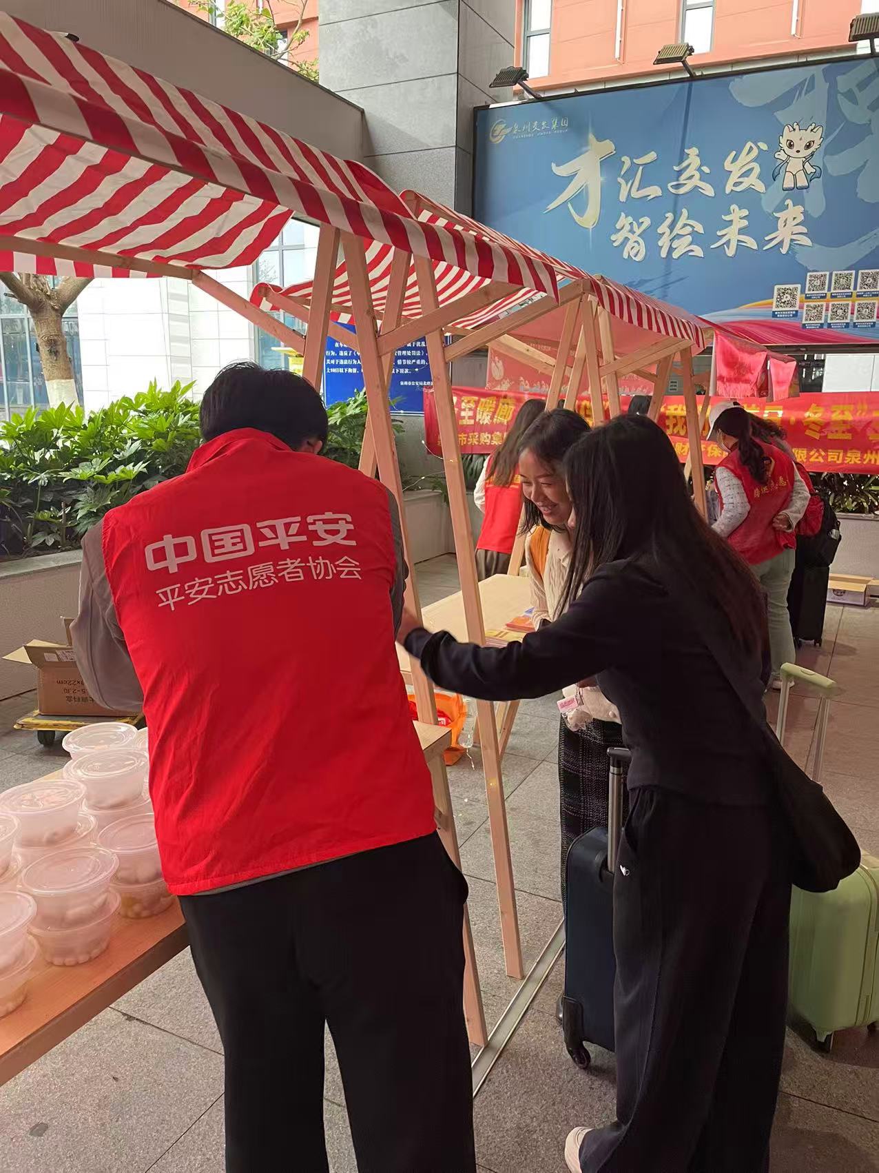“冬至大如年”,作为中华民族重要传统节日,冬至承载着团圆与温暖的美好寓意。12月21日,平安产险泉州中心支公司以“冬至暖廊·温情相伴”为主题,组织志愿者走进泉州动车站开展公益活动,为旅客、执勤民警及一线工作人员送上手工汤圆,让传统节日的暖意流淌在车站的每个角落。