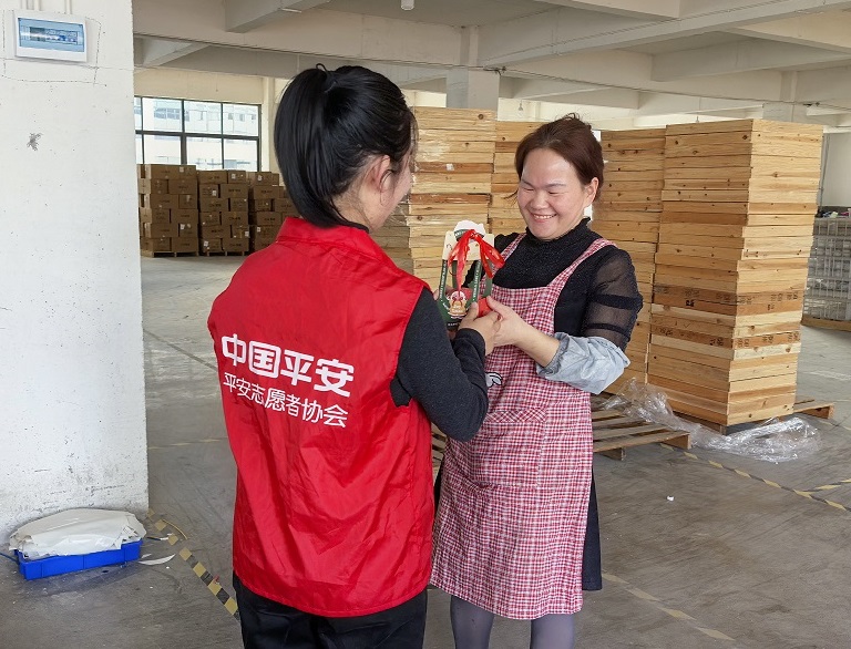 在德化的陶瓷厂车间,平安产险泉州中心支公司志愿者穿梭其间,不仅结合生产场景讲解安全防护知识,递上金融防诈手册,还将一粒粒精心包装的红苹果送到新市民工人手中。一位女工轻抚包装纸上的“平安”字样,感慨道:“在外打工最惦记家里,这份祝福也让我安心。”
