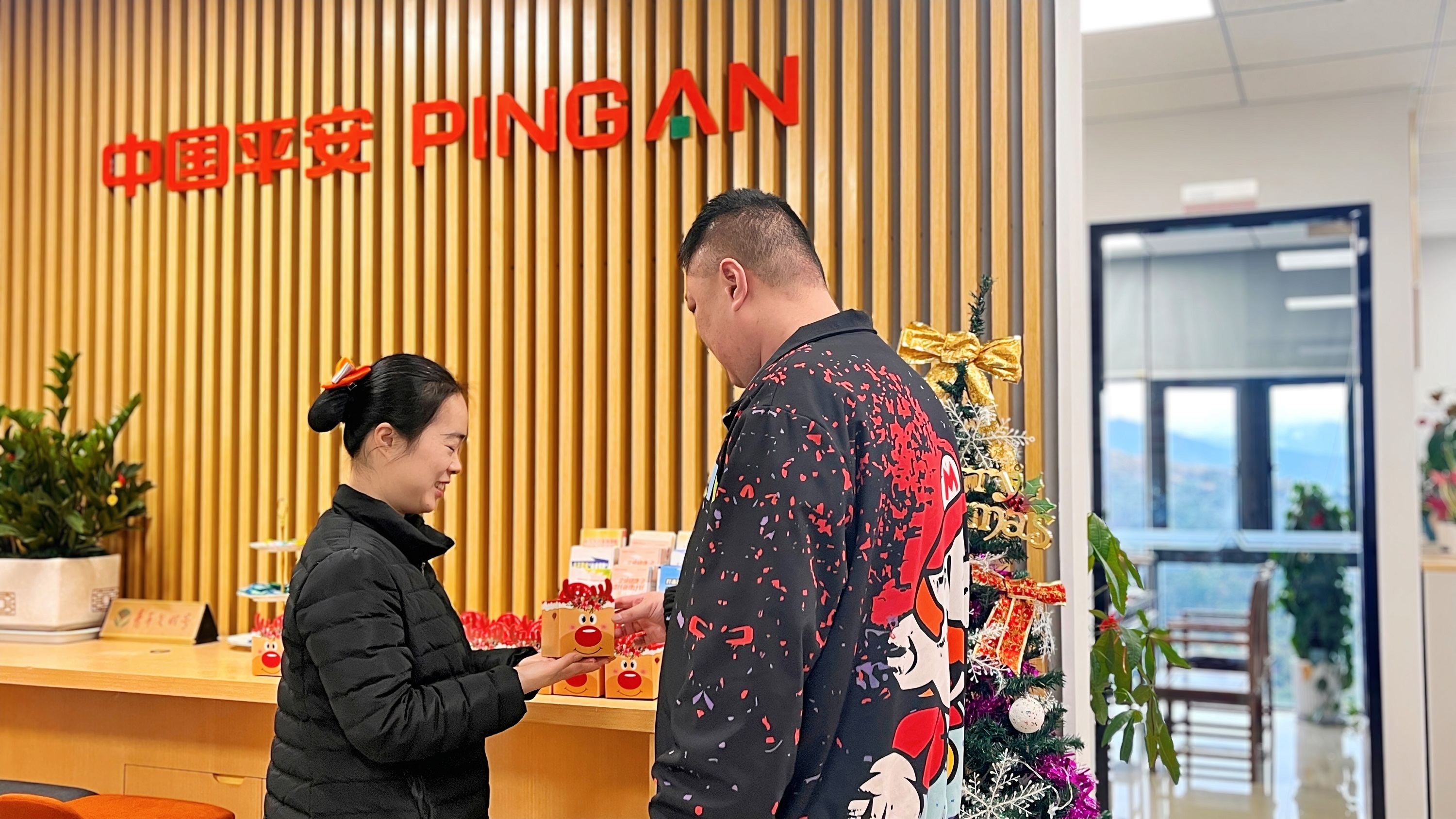 在平安产险莆田中心支公司的营业厅内,上门客户办理完业务,惊喜地收到了一份仪式感满满的小礼物:“平安喜乐,确实是新年最好的祝福!”