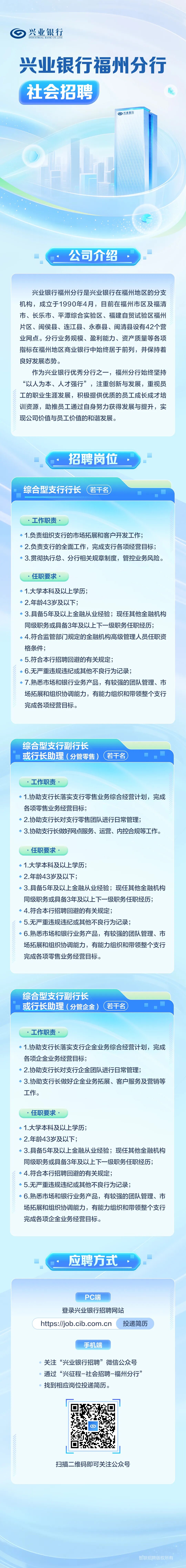 兴业银行福州分行社会招聘来了!