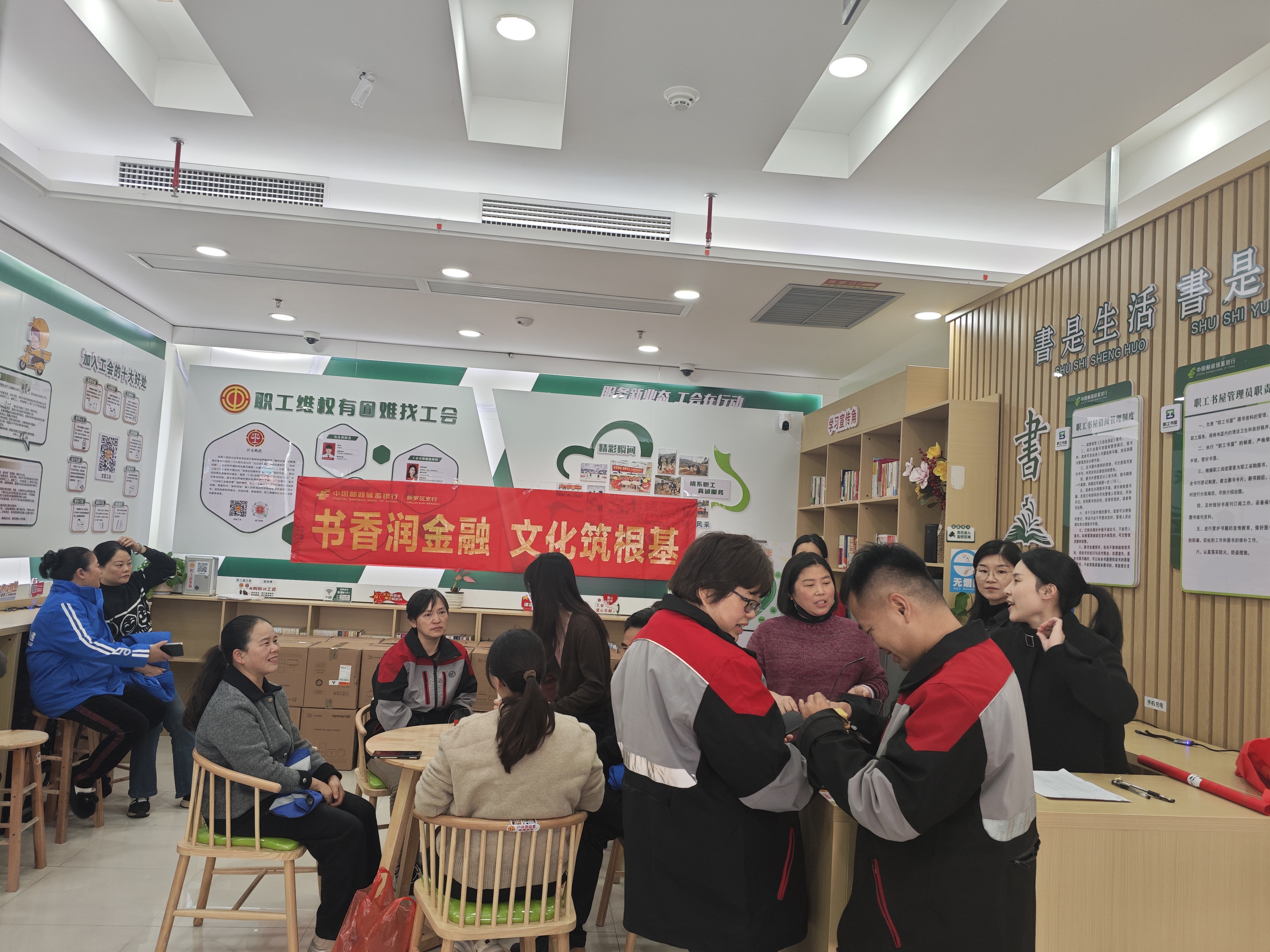 为深入推进“书香银行”建设,营造“爱读书、读好书、善读书”的良好氛围,近日,邮储银行新罗区支行围绕“服务职工、惠及客户”双主线,与龙岩市总工会联合在营业厅旁工会驿站书香角举办“顺风书友会”活动。支行职工与顺丰公司客户代表共聚一堂,以书香凝聚共识,以文化赋能服务。