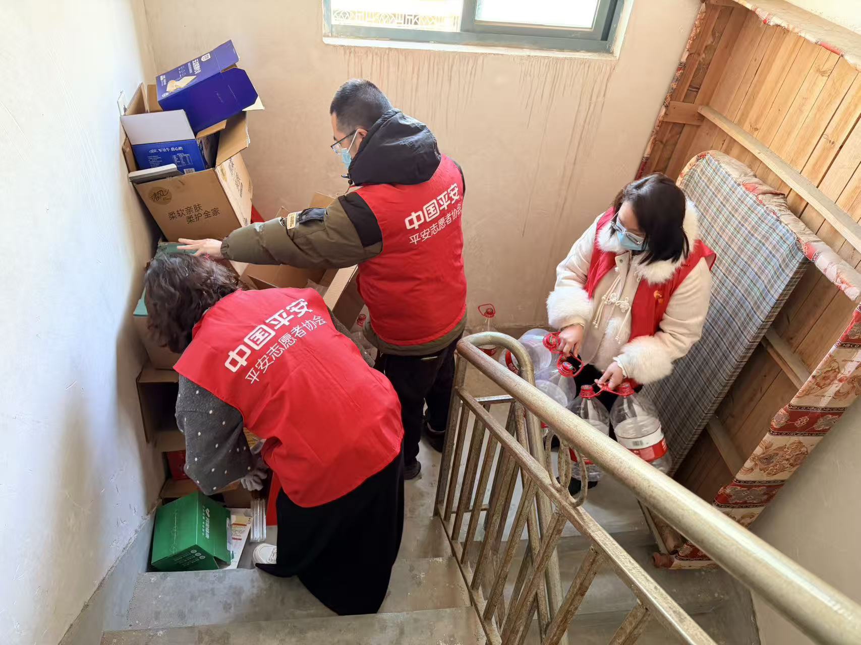 随后,平安产险的志愿者们又投身于楼道之中,开展“清障”行动。他们耐心协助居民,将堆放在公共区域的纸箱、旧家具等杂物逐一清理、妥善规整。这场“让生命通道畅通起来”的体力活,吸引了多位居民主动加入。大家并肩协作,在挥洒汗水中,将公共空间还原为整洁安全的模样。