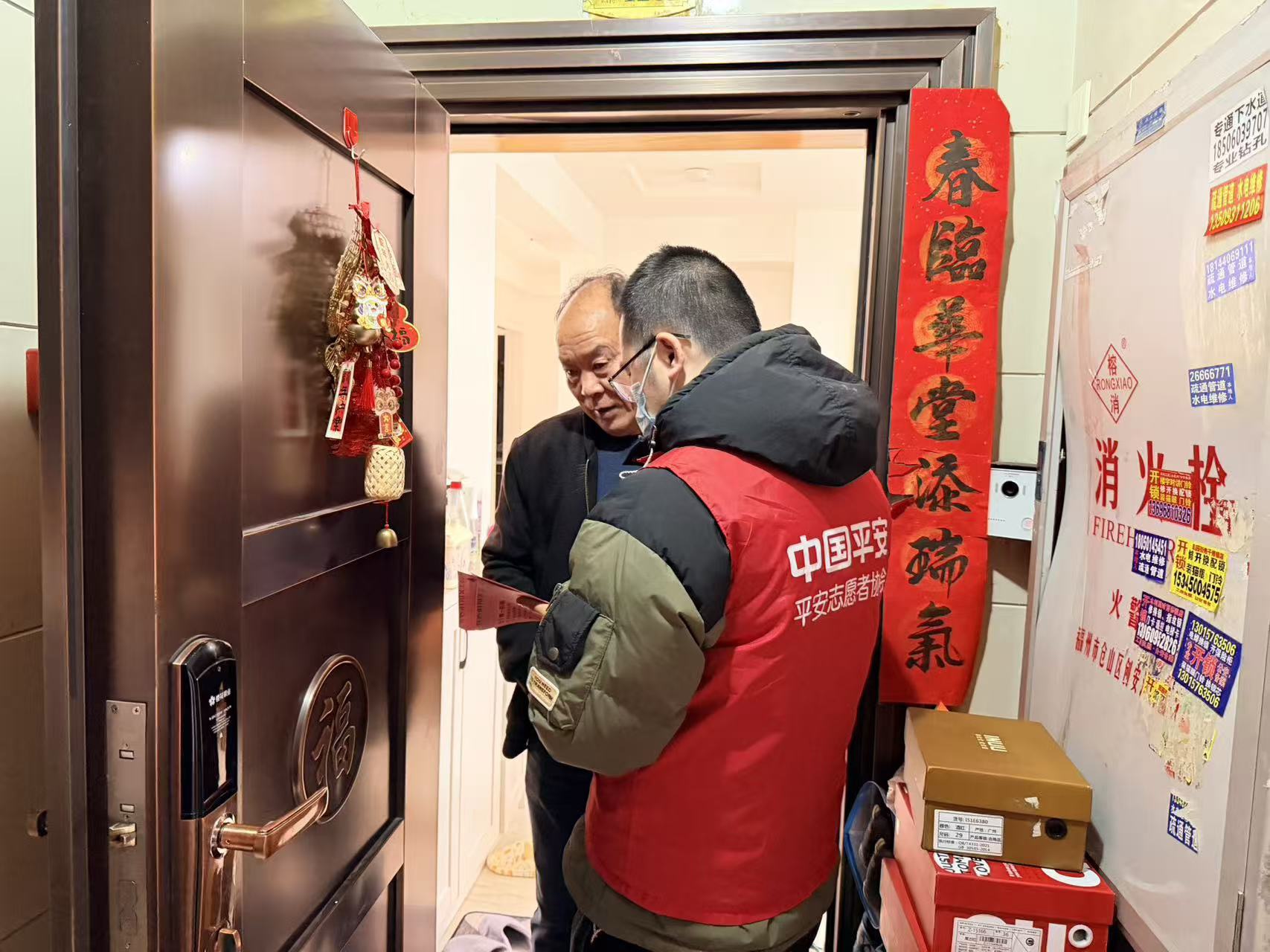 岁末寒冬,平安产险福州中心支公司的志愿者们却热情似火。1月26日,他们身着志愿马甲,主动走进连江县滨江社区,一场以“消除安全隐患,护航平安新年”为主题的志愿行动,在邻里间温暖展开。