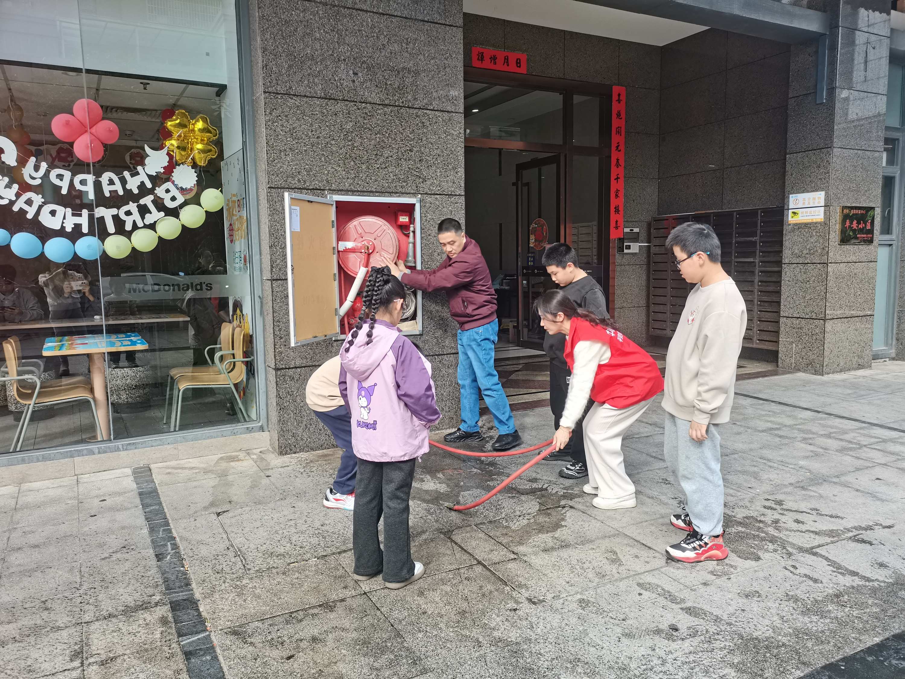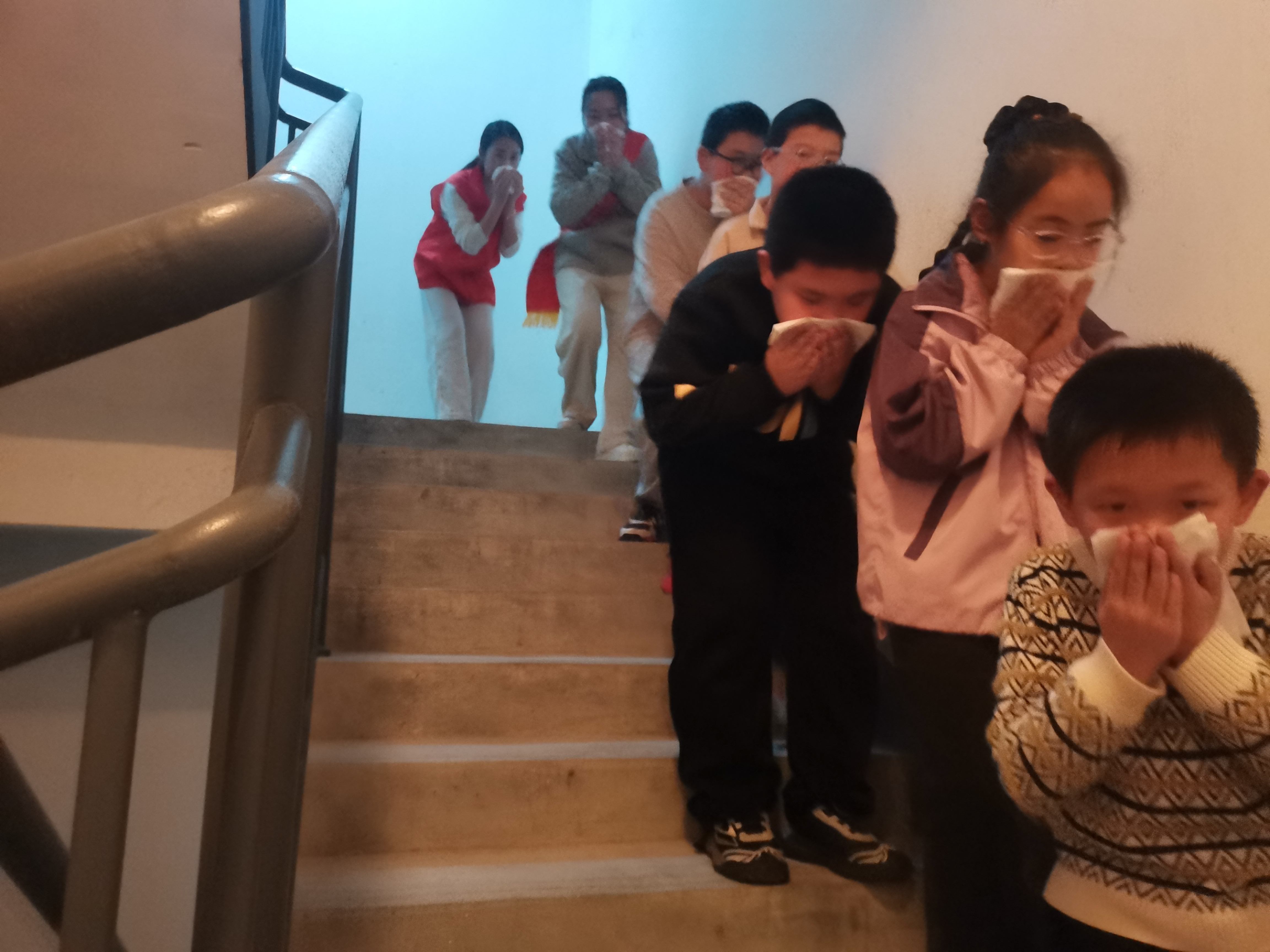 紧接着,刺耳的警报声拉响,消防逃生演练正式开始。在平安产险志愿者的引导下和护航下,孩子们用湿毛巾捂住口鼻,弯着腰,沿着安全通道迅速而有序地撤离“火场”。那一刻,没有慌乱,只有冷静与协作。