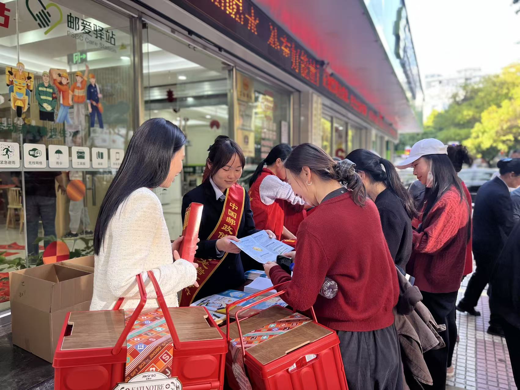 在市民等候春联的间隙,邮储银行邮爱驿站服务小分队的宣讲员们主动上前,开展“零距离”金融知识普及。“阿姨,您知道吗?高收益、低风险的‘理财项目’可能是非法集资!”“叔叔,陌生电话说您中奖要先交手续费,千万别信!” 宣讲员们用通俗易懂的方言和生活化的案例,向市民们详细解读存款保险制度的保障范围,揭露非法集资“画大饼”“许高息”的骗人套路。同时,工作人员发放图文并茂的宣传手册,现场为市民答疑解惑,引导大家守护好自己的“钱袋子”。