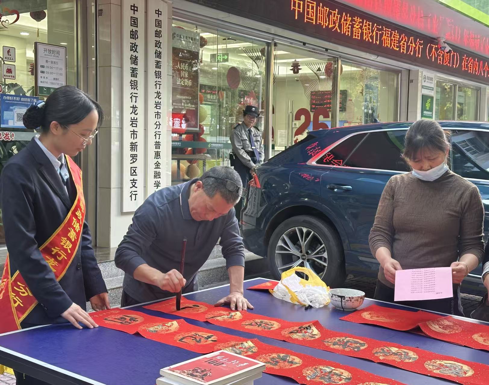为进一步弘扬中华优秀传统文化,切实提升市民金融素养与法治意识。近日,邮储银行龙岩市新罗区支行联合龙岩市总工会在工会驿站门前成功举办“春联送福·金融普法进万家”主题活动,以笔墨传情送新春祝福,专业宣讲护财产安全,让市民在氤氲年味里收获双重惊喜,现场好评不断!