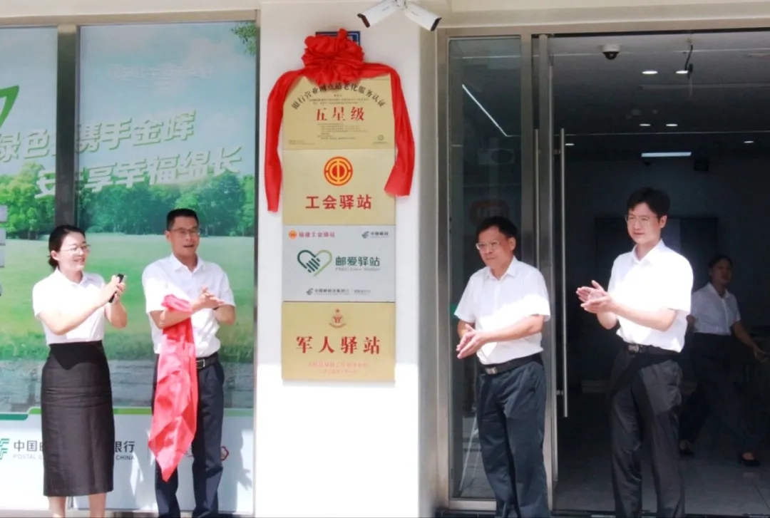 伴随着一阵热烈的掌声,一张金灿灿的“五星级”牌匾揭幕。今年10月,在当地人民银行的指导下,邮储银行上杭县支行通过第三方认证,获得银行营业网点适老化服务“五星级”认证,硬件及服务规范达标率均为100%,是龙岩市首家获此认证的银行,成为上杭县打造适老化标杆网点、提升服务联盟工作质效的新成果。