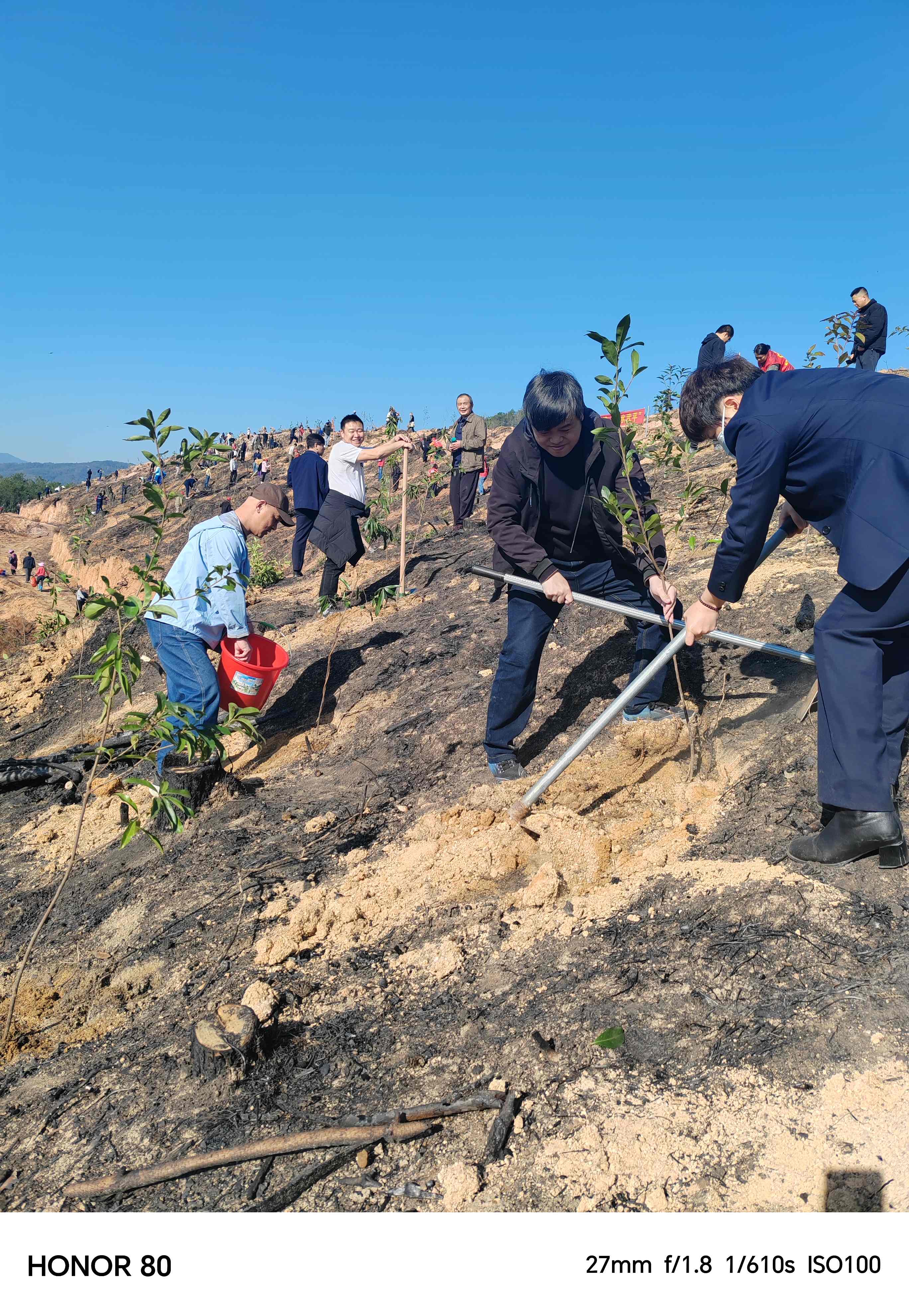 活动现场,春意盎然、暖意融融,邮储银行武平县支行的志愿者们精神饱满、热情高涨,大家严格按照植树规范,分工协作、默契配合。各员工奋勇争先、干劲十足,细致做好踩实围堰、浇灌定根等工作。从选苗、定植到浇水养护,每一个环节都有条不紊、细致认真,充分展现了邮储人团结协作、吃苦耐劳的良好风貌。经过近3小时的通力协作,一棵棵新栽的树苗迎风挺立、错落有致,在春日的阳光下焕发出勃勃生机,为武平大地再添一道靓丽的绿色风景线。
