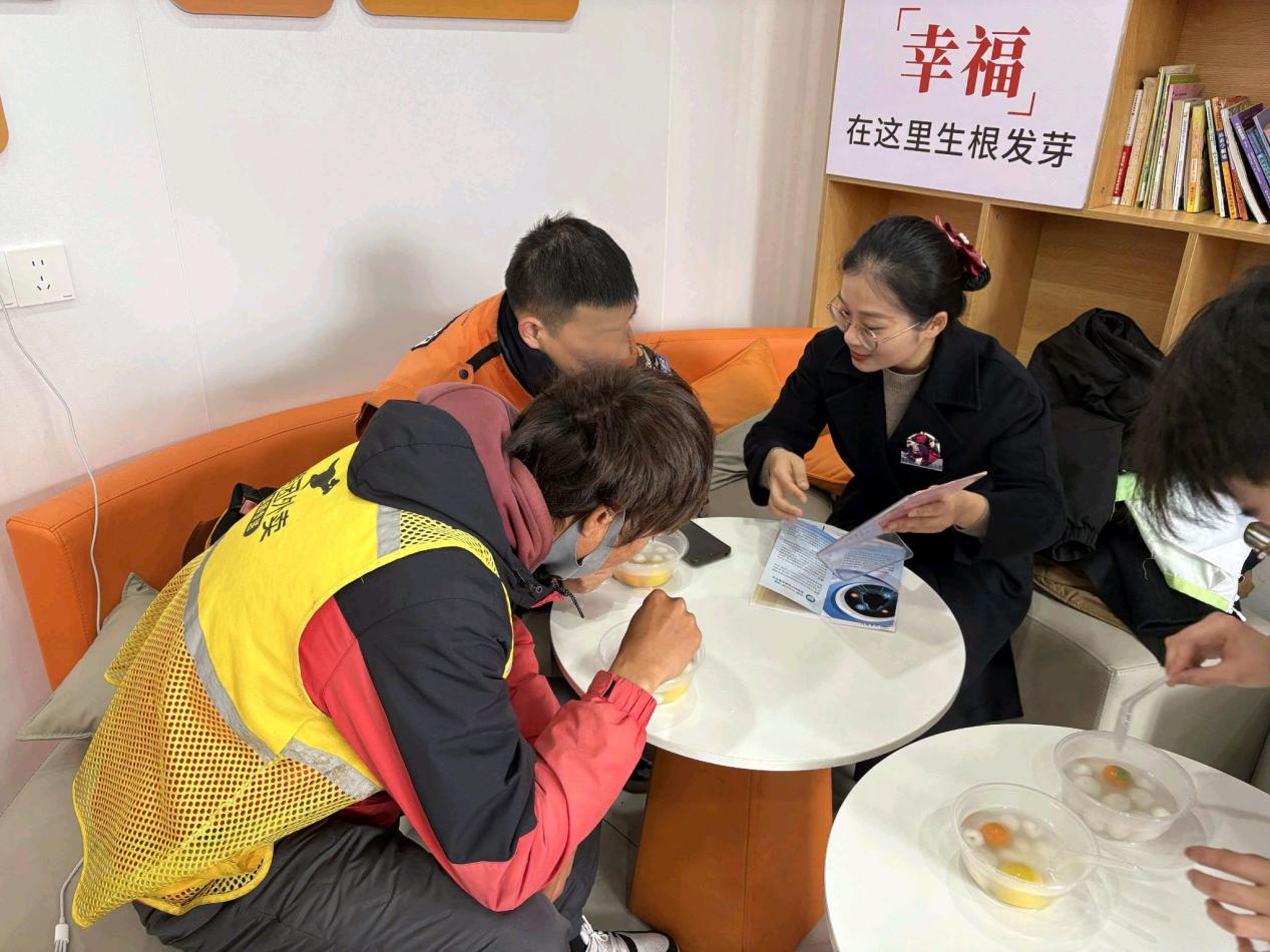 在城市的暖心驿站里,志愿者把金融科普变成一场“围坐式”茶话会。趁着骑手们、环卫工人休息的间隙,志愿者从大家最常遇到的“网贷记录是否影响房贷”“收到可疑短信怎么办”等实际问题出发,耐心讲解征信管理、反诈技巧等知识,在一问一答之间,让金融知识真正落地生根。