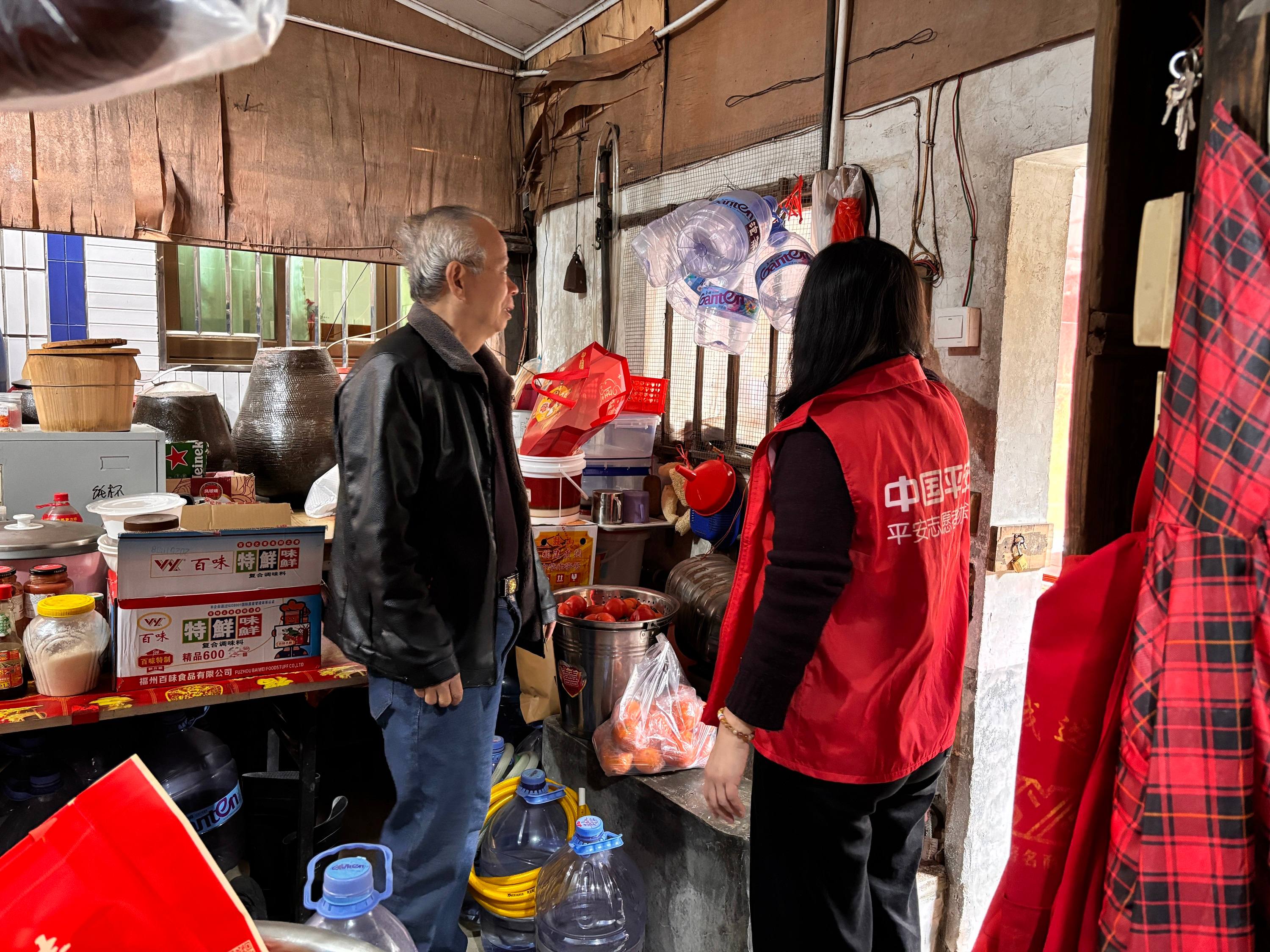 除了生活上的帮扶,平安产险志愿者们本次还重点关注老人们居家环境的安全问题。针对4月福州“回南天”空气潮湿、电器线路易短路,以及清明节期间民俗用火增多的季节性风险,平安产险志愿者们发挥专业优势,为老人家中开展了一次全面的“消防安全体检”。