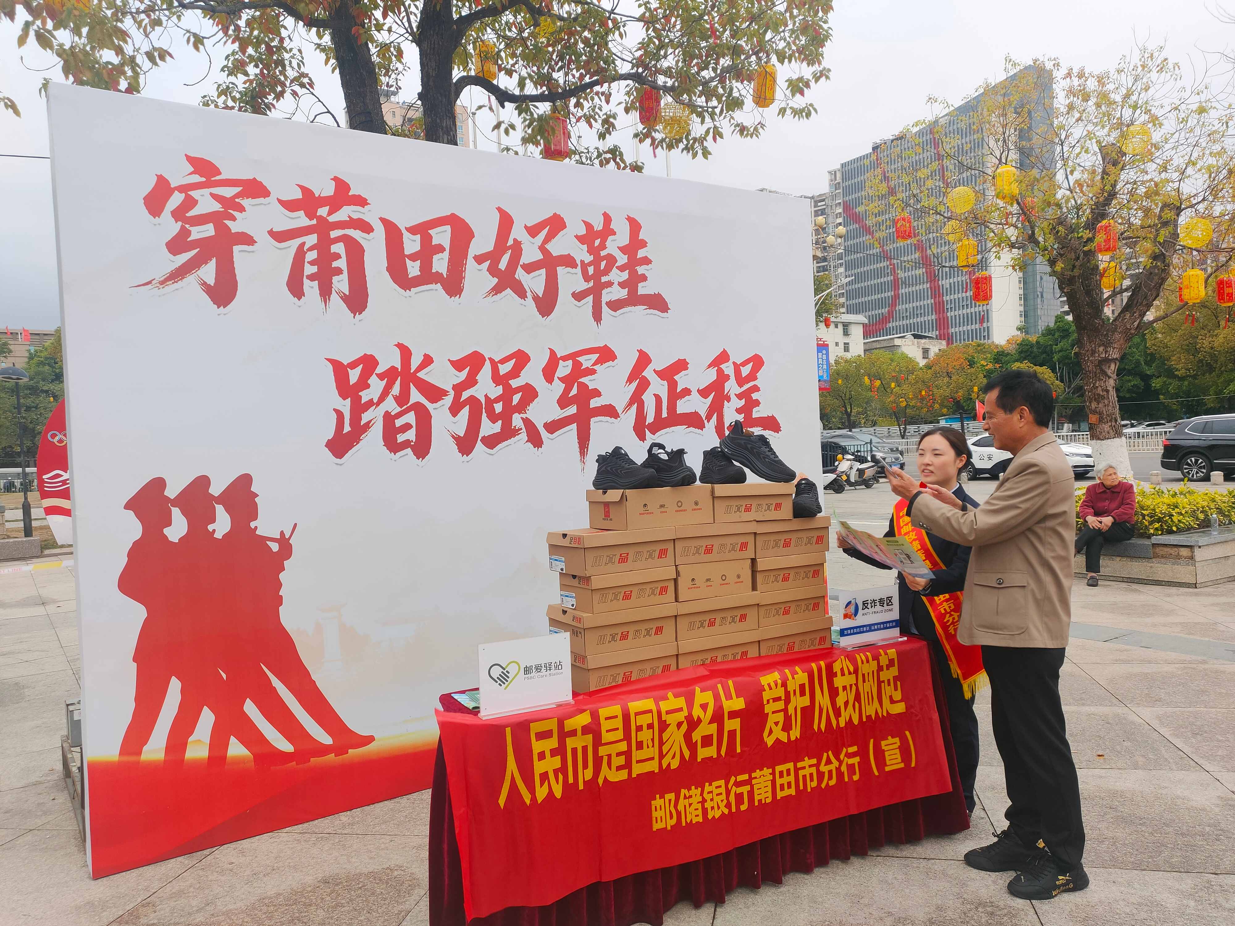 欢送仪式现场,戎装挺拔、红花映面,新兵们精神昂扬、整装待发。邮储银行莆田市荔城区支行宣传人员设立便民服务与宣教点位,悬挂宣传横幅、摆放宣传折页,围绕爱护人民币、反假识假、整治拒收现金、规范现金使用等内容开展精准宣讲。工作人员结合《人民币管理条例》,用通俗语言讲解人民币作为国家法定货币与“国家名片”的重要意义,明确禁止涂画、撕扯、焚烧、故意污损人民币等违法行为,提醒大家妥善保管、规范使用现金,自觉维护货币尊严与流通秩序。针对青年群体特点,宣传人员现场演示真假币识别技巧,讲解水印、安全线、光彩光变数字等核心防伪特征,告知误收假币应主动上交银行或公安机关,不使用、不传播。同时,结合军营生活与异地用卡场景,同步普及银行卡安全、防范电信诈骗、残损币兑换等实用知识,帮助新兵筑牢资金安全防线,提升金融素养与法治意识。